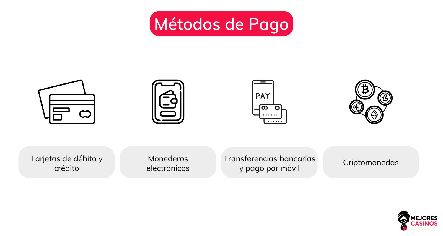 - Sus métodos de pago preferidos disponibles, incluyendo monederos electrónicos y tarjetas