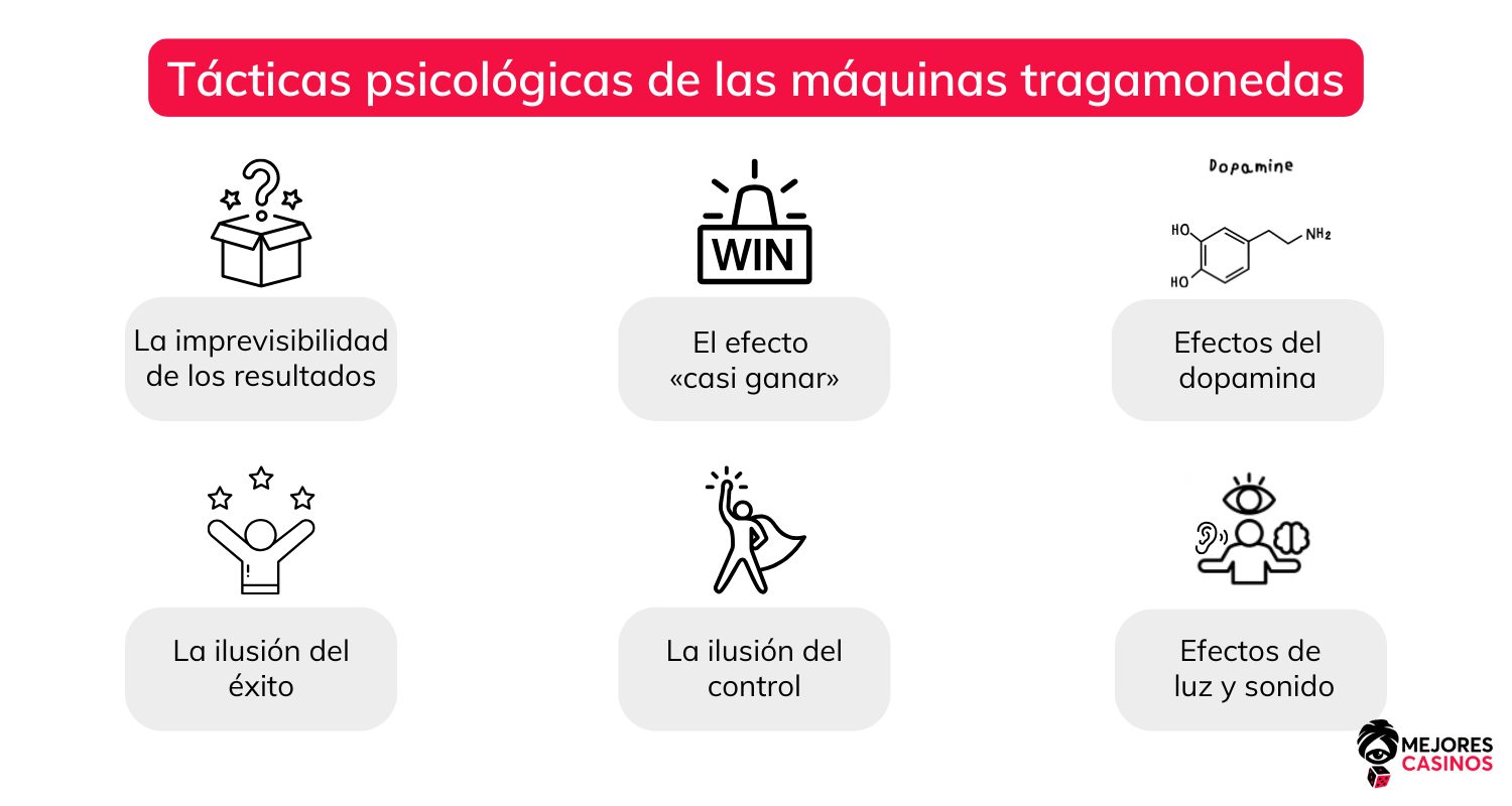 La dopamina es la sustancia química de recompensa del cerebro y juega un papel importante en los efectos psicológicos. Tanto las ganancias como las casi-ganancias provocan la liberación de esta sustancia, lo que proporciona a los jugadores un sentimiento de logro.
