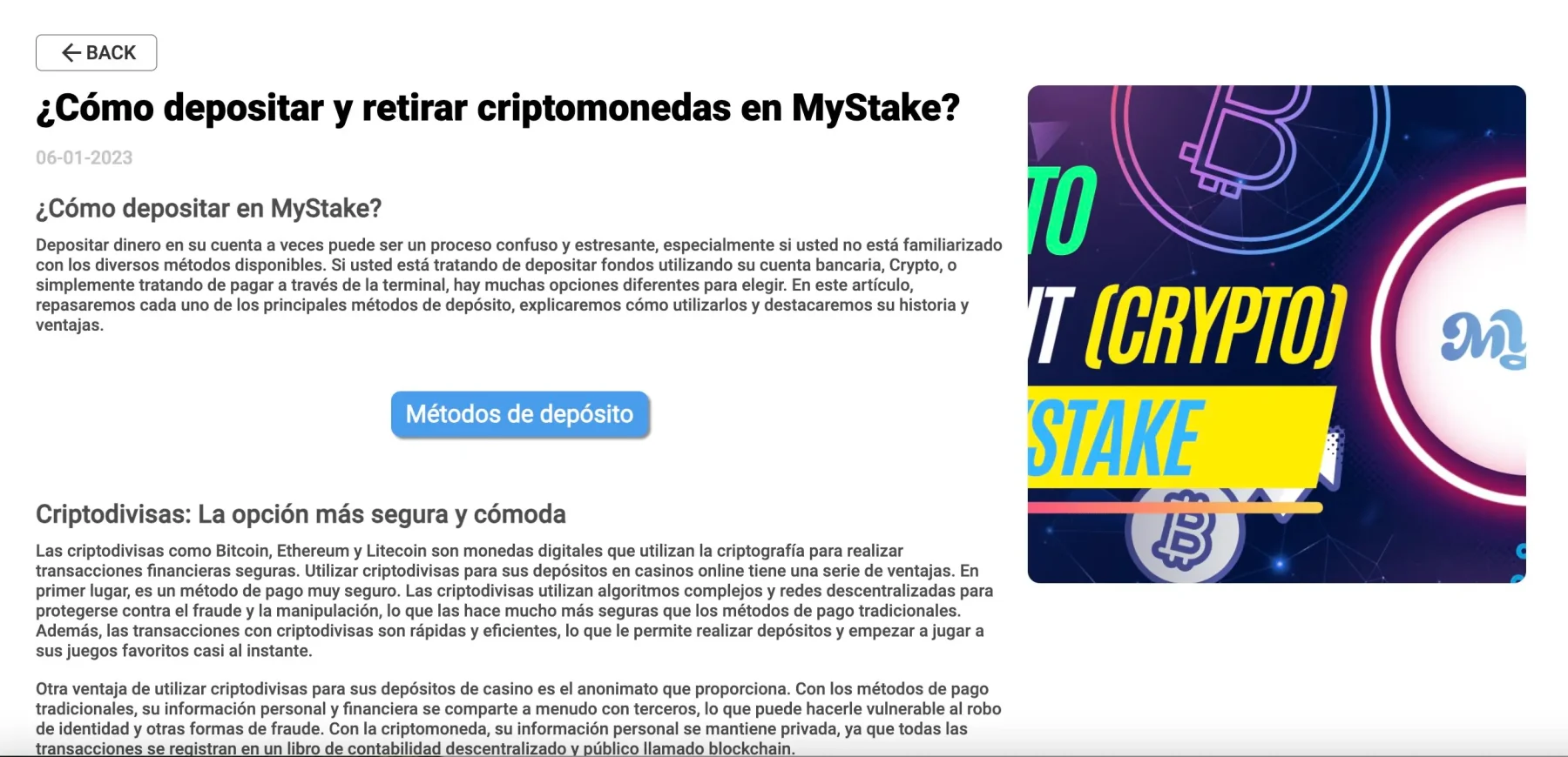 El sitio web de MyStake cuenta con una sección de preguntas frecuentes (FAQ) completa, ideal para quienes buscan respuestas inmediatas. Esta sección aborda consultas comunes sobre gestión de cuentas, métodos de pago y reglas de juego.