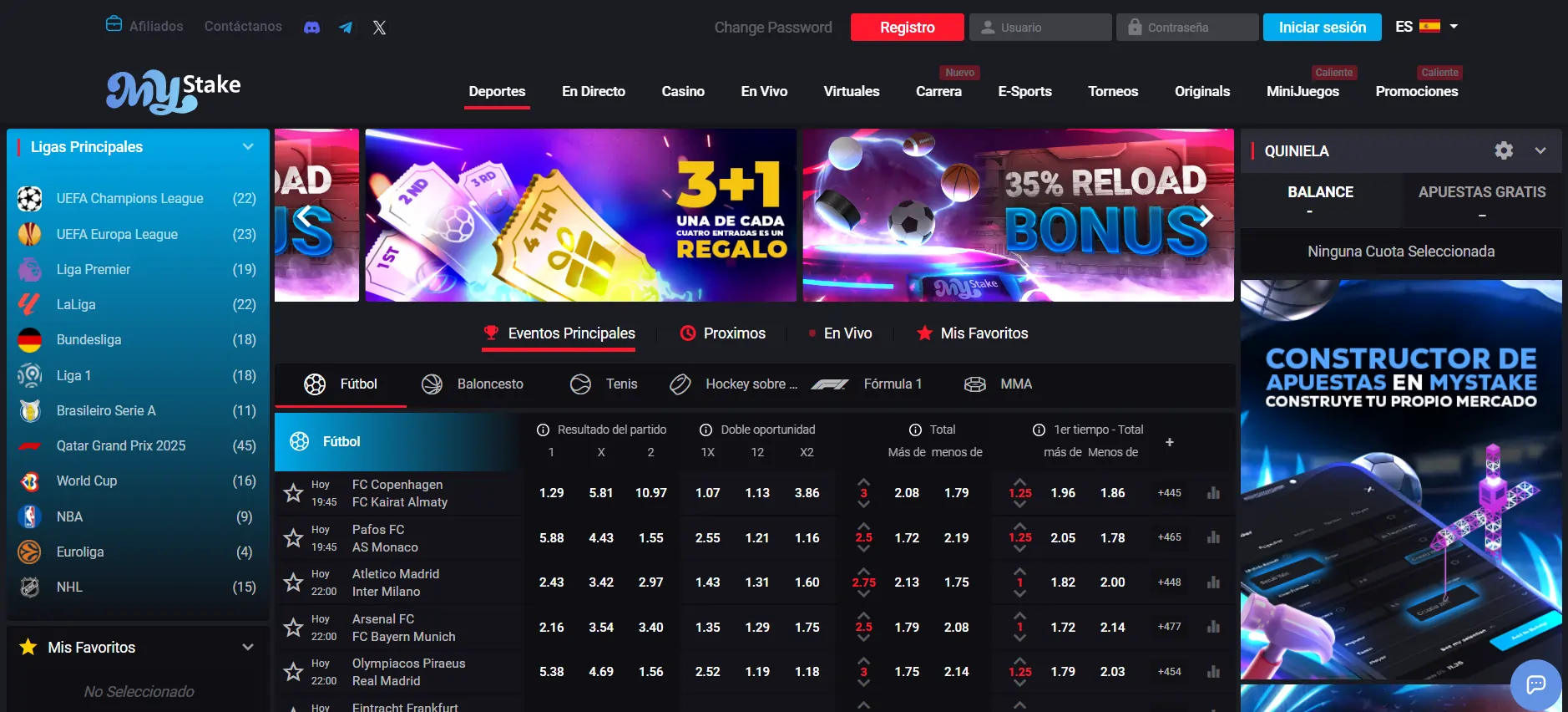 El foco principal está claramente en el fútbol, con mercados amplios para competiciones como la UEFA Champions League, Europa League y Premier League. La oferta de cuotas es competitiva y cubre una gran variedad de líneas.