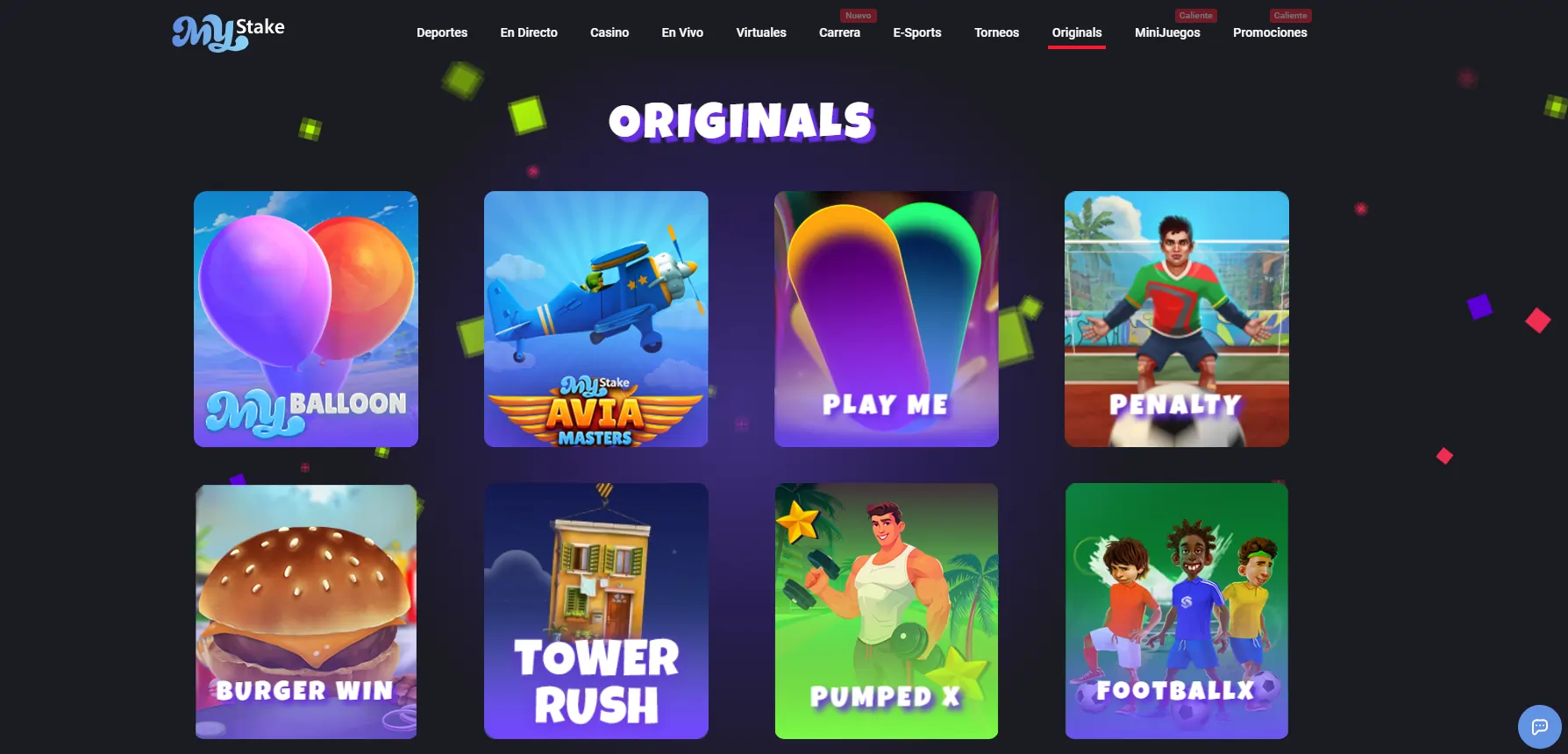 Además del contenido de terceros, MyStake cuenta con su propia colección de juegos originales (unos 20), con temáticas basadas en comida, deportes y aviación.