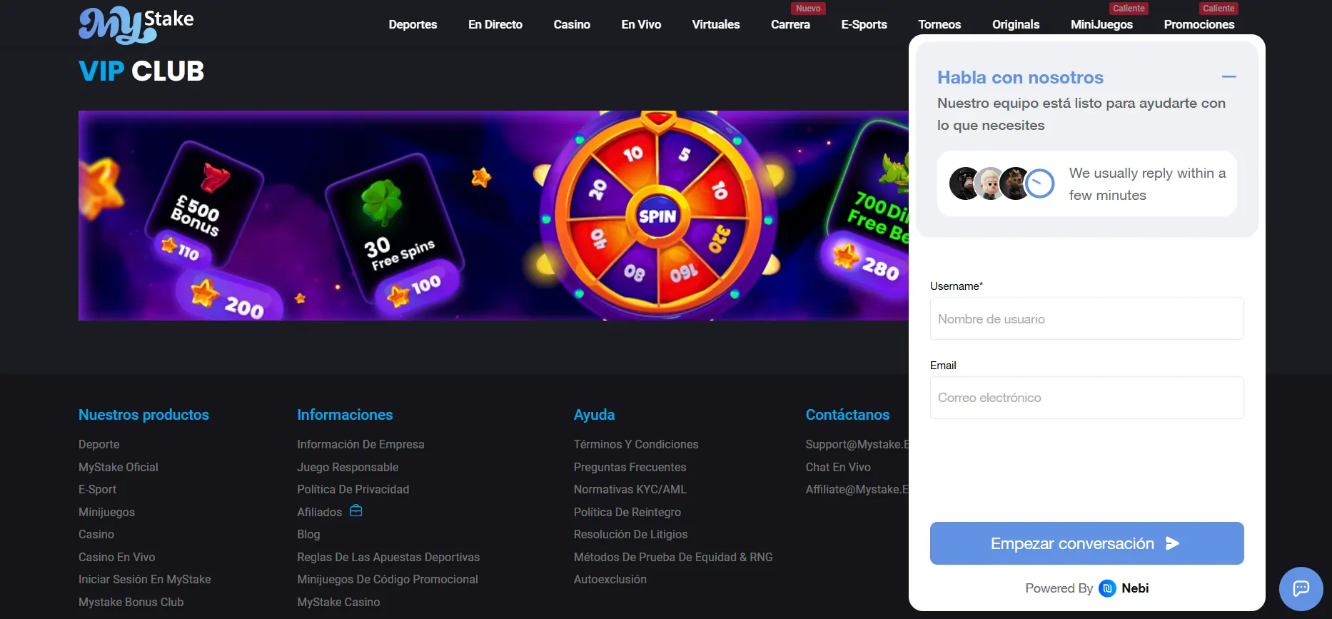 También valoramos el amplio apartado dedicado al juego responsable, donde se incluyen herramientas de control y contenidos informativos. Esto demuestra el compromiso de MyStake con la protección del jugador.