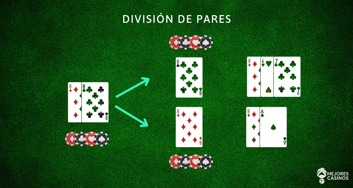- Dividir pares puede ser una estrategia efectiva, pero depende de la carta del crupier y las reglas del casino.