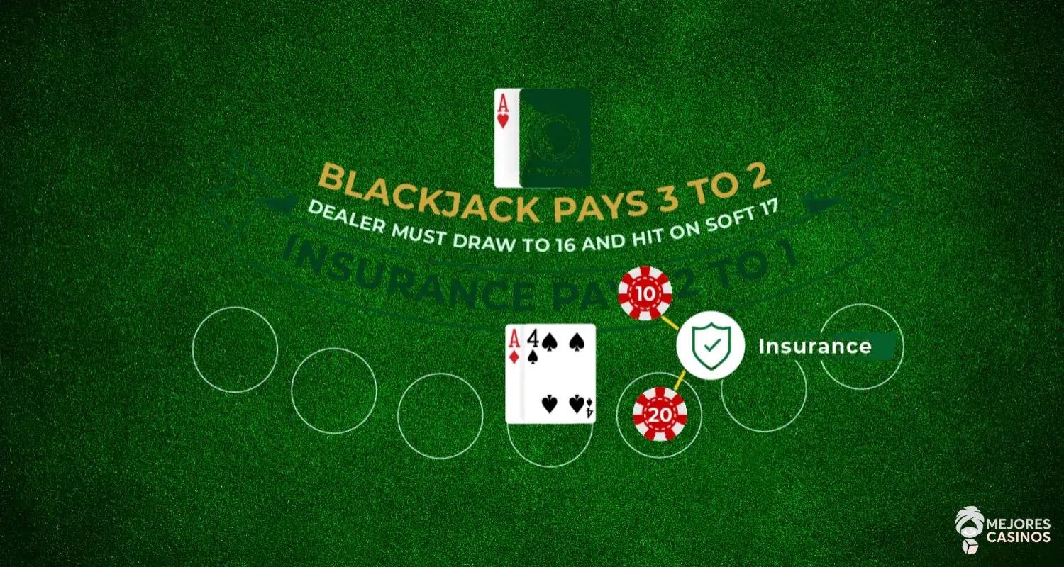 Los jugadores pueden hacer una apuesta de seguro si el crupier muestra un As. Esta apuesta paga 2 a 1 si el crupier tiene blackjack.