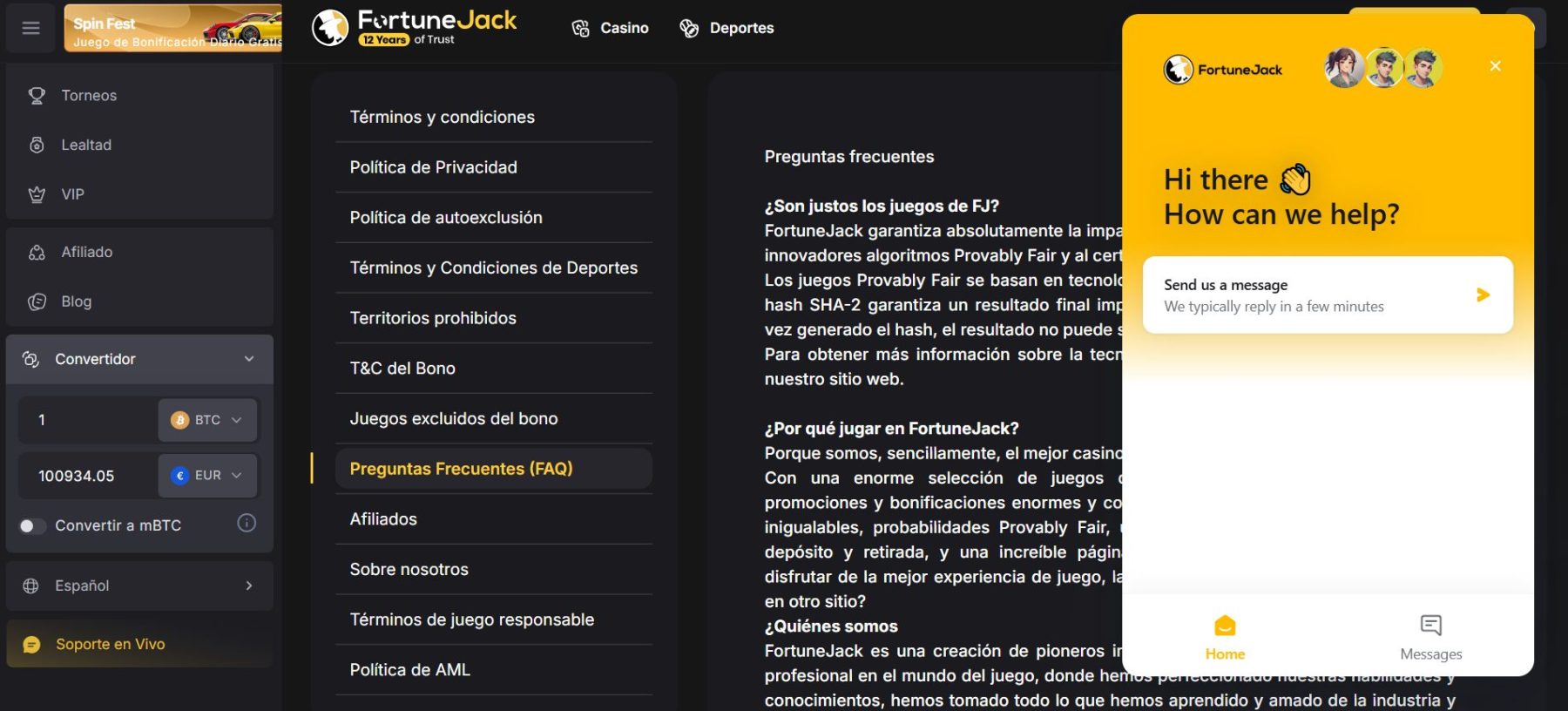 Si prefieres resolver dudas por tu cuenta, FortuneJack cuenta con una sección de Preguntas Frecuentes (FAQ) en la parte inferior de la página.