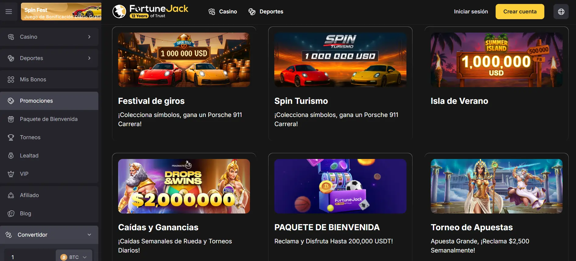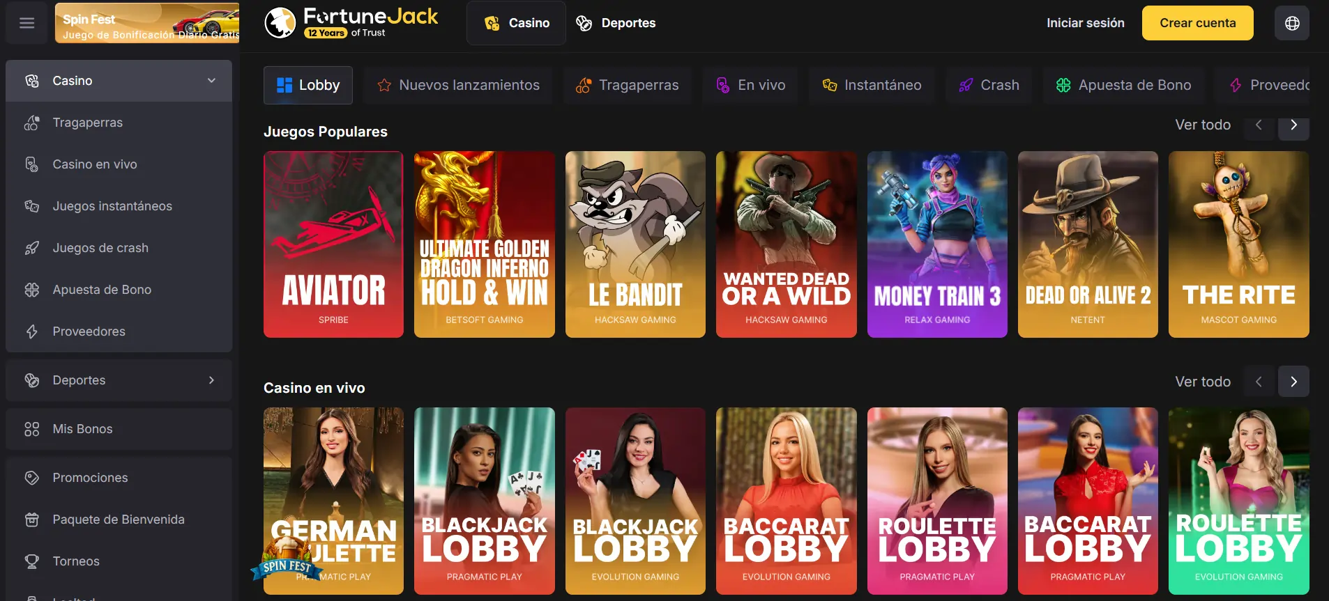 Sí. FortuneJack es una opción recomendable si disfrutas de una amplia selección de juegos y deseas jugar con criptomonedas. Su catálogo incluye juegos en vivo, tragamonedas, juegos crash y más, todo acompañado de un servicio de atención al cliente sólido y confiable.