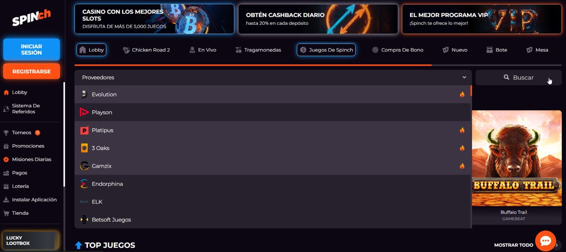 Spinch Casino, con más de 15,000 juegos de más de 100 proveedores, ofrece una diversidad incomparable y acceso a los juegos de casino más populares del mercado. Puedes explorar categorías como tragaperras, juegos de mesa y lanzamientos en vivo, o probar opciones más específicas como Originals, nuevos lanzamientos o tragaperras con compra de bonos.