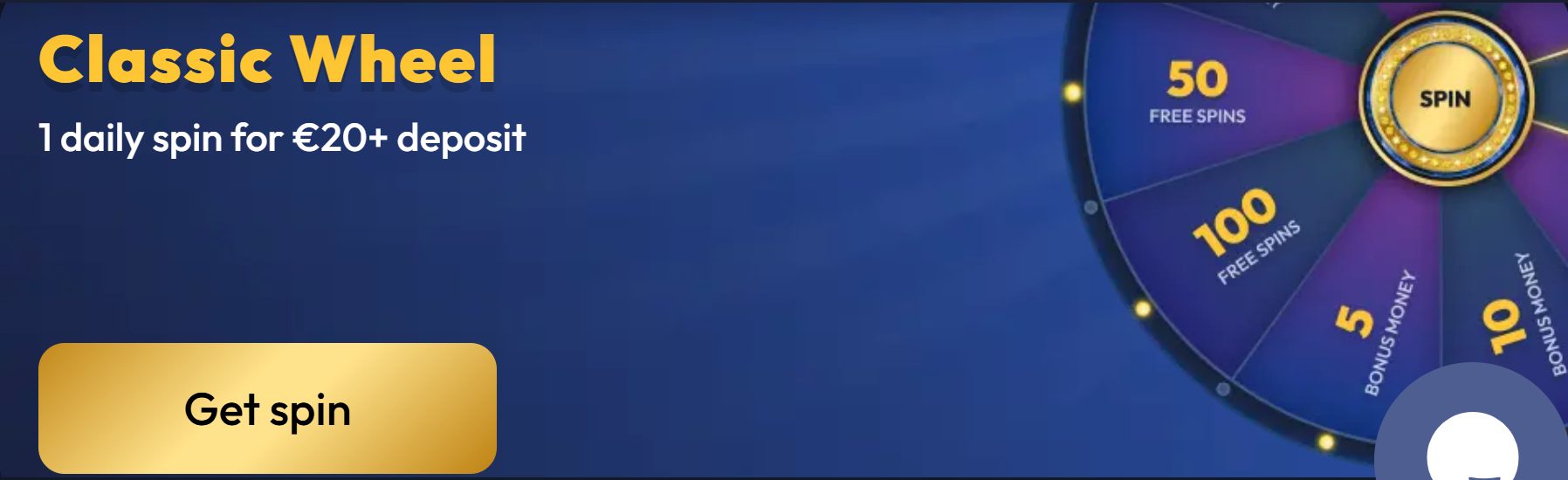 La Classic Wheel es perfecta para cualquier jugador. Solo necesitas un depósito mínimo de 20 €, y recibirás un giro gratis al día.