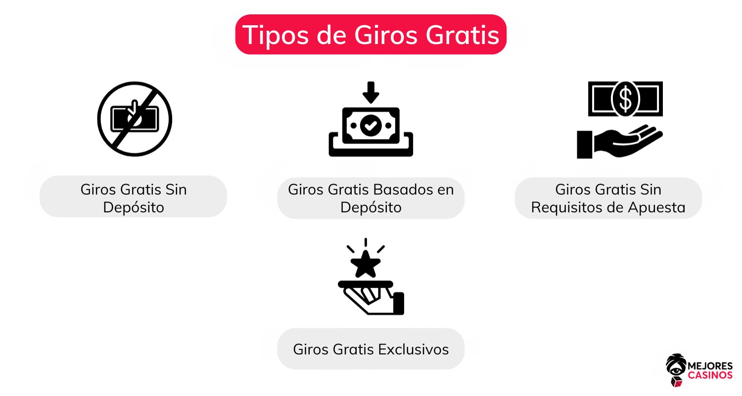 A continuación, se presentan los tipos más comunes de giros gratis sin depósito disponibles.