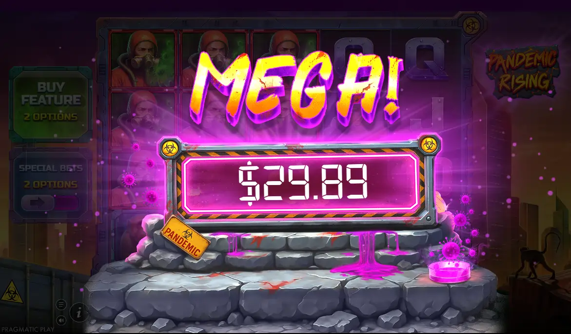 Pragmatic Play introduce cinco héroes y un mono infectado como los símbolos de alto valor, una banda sonora etérea y un medidor de virus para mantenerte alerta. Mientras que generalmente querrías mantener el virus lo más lejos posible de ti, en los carretes es bienvenido. Los símbolos de Virus llenan el medidor de virus con multiplicadores de hasta 100x ¡y aumentan tus ganancias! Esto está disponible solo durante las rondas de giros gratis.