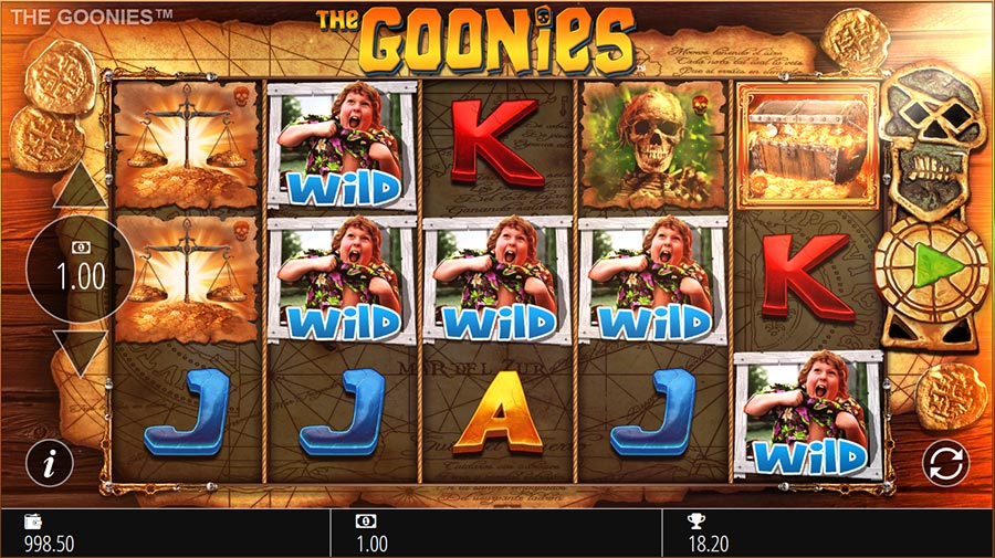 Nos encantaron los siete modificadores, como los símbolos colosales o las monedas de la suerte, que traen una nueva emoción a algunos giros. La sensación es como sacar una carta en un juego de mesa, que luego afecta toda esa ronda. También fue genial ver seis posibles rondas de bonificación, todas perfectamente alineadas con el tema de The Goonies.