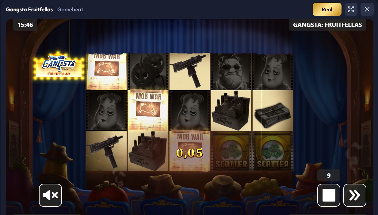 Desarrollado por el confiable proveedor Gamebeat, Fruitfellas ofrece una experiencia realmente diferente: la acción tiene lugar en un mundo subterráneo donde las frutas toman roles de gánsteres. Las señales de neón parpadean en los edificios y el fondo está lleno de suaves melodías de jazz.