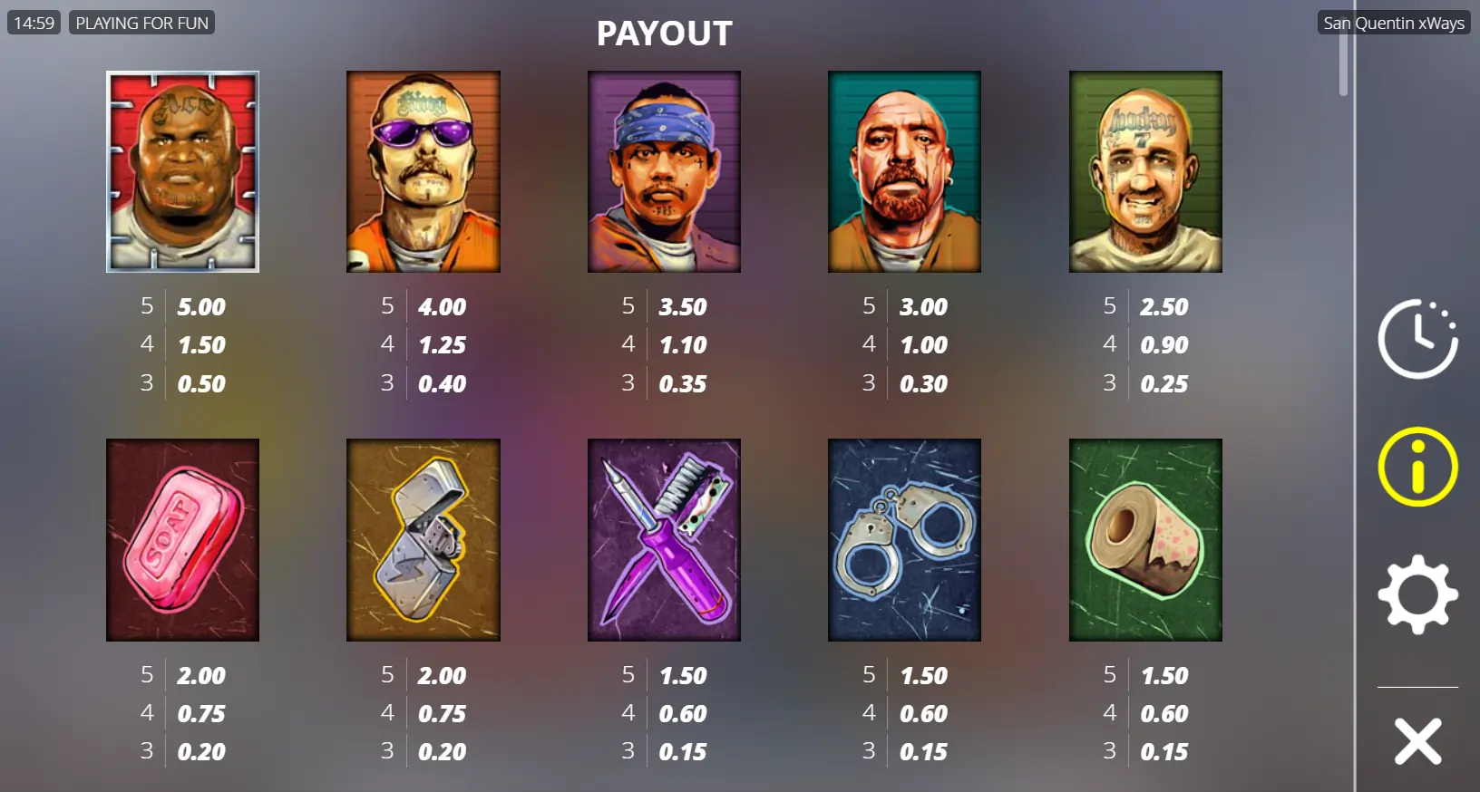 - Símbolos y Tabla de Pagos de San Quentin xWays