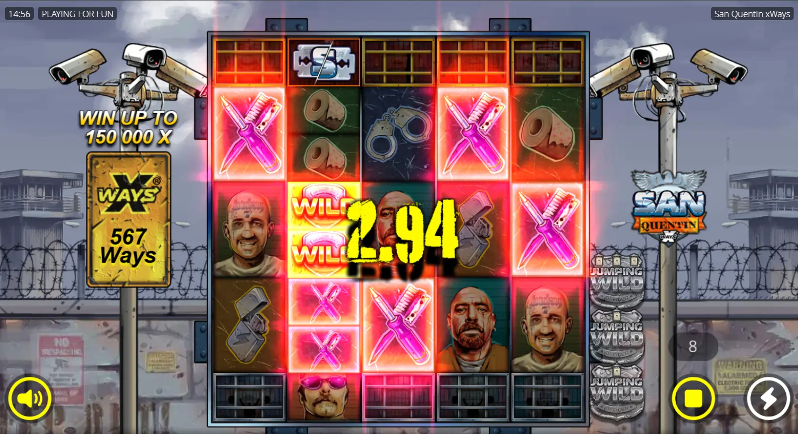 San Quentin xWays también destaca por sus Wilds especiales, que no solo sustituyen símbolos normales, sino que además aumentan las probabilidades de ganar.